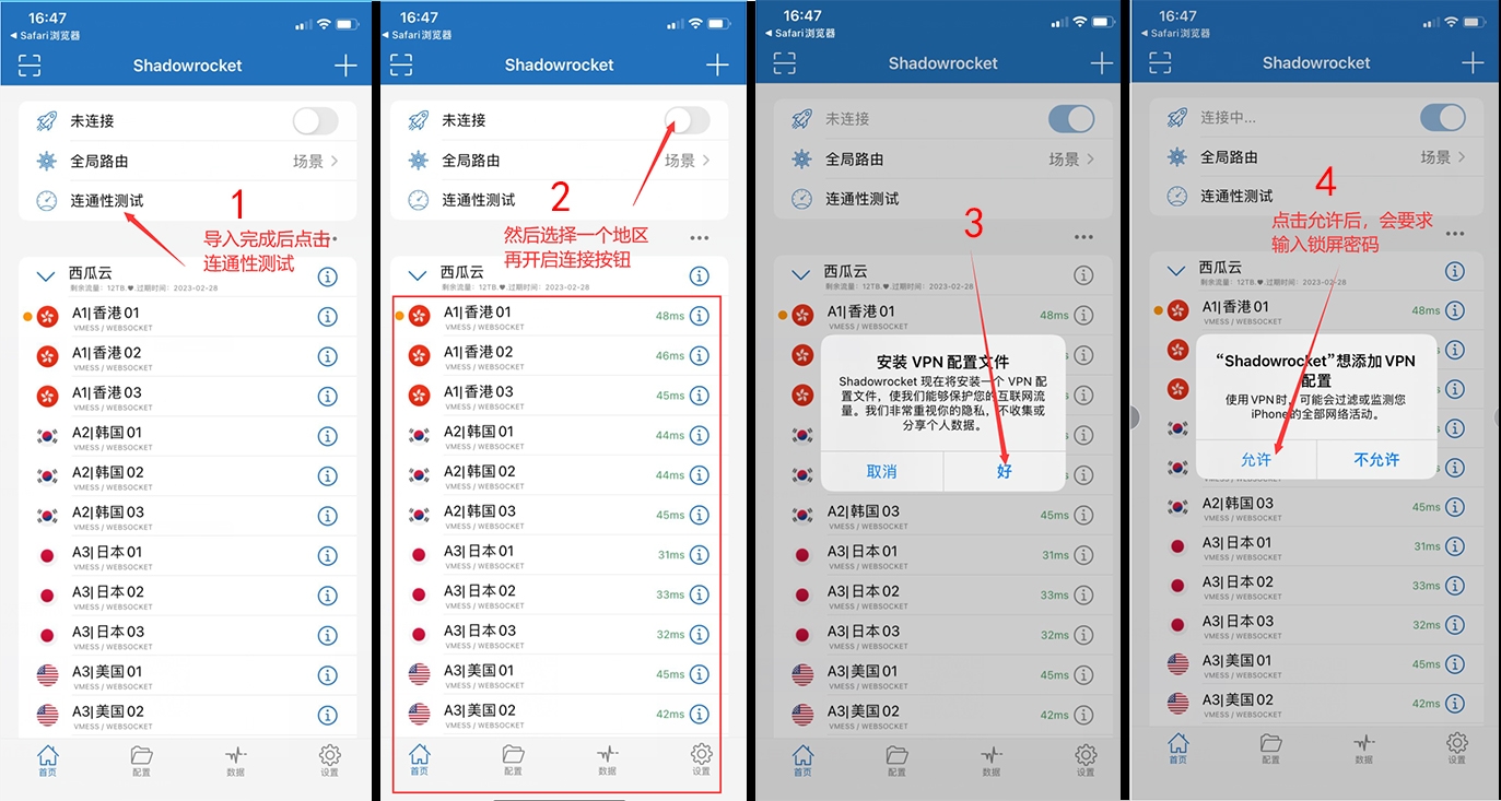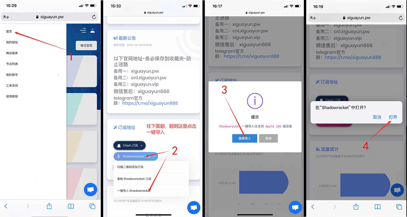 ### 第一步:下载软件,如果之前有这个小火 箭软件(Shadowrocket),直接跳过该步骤 ### **务必别点升级安全,有双重验证请点击其它选项-不升级,请仔细查看操作流程,随意绑定容易锁机** ## [点我获取最新ID](https://apple.6eg.pro/) 获取id网页:apple.6eg.pro (复制到浏览器打开) 【如果都被提示双重验证验证码,联系官网在线客服换】 自用不要分享!安装完软件及时退出账号 先按照下图切换id:  切换完成后,appstore会变成英文面板,如果没变的话,清除一下app store的后台,重启一下app store 然后搜索shadowrocket下载软件,下载完就可以退出账号登回自己的了,然后看第二步教程  ### 第二步:注册和购买套餐 用自己的邮箱注册然后登陆(邮箱账号和密码要记得哦)请在浏览器里输入地址 最新网址:cn1.jichiyun.sbs 备用地址: cn3.jichiyun.com 备用地址2: cn.jichiyun.vip 1. 登录后点击右上角菜单按钮,选择商店服务,选择套餐点击购买 2. **如果淘宝购买的,选择商店服务右上角的兑换套餐,使用淘宝自动发货的套餐码即可**  ### 第三步:添加订阅链接到小火箭软件里面 返回官网首页,往下翻到最底,选择小火箭一键导入,会自动跳转小火箭  导入完成后会自动跳转到小火箭(如果没跳转就是下载错软件了,最好使用safari浏览器) 导入完成后选择一个地区线路,开启连接即可  然后就可以上网啦 **下图为自动更新开启教程,可开可不开,做完上面一步已经可以使用了**  ### 疑难杂症解答 苹果 手机/平板 可能遇到的情况 1.若出现导入节点失败,或节点无效果,可以尝试切换一下网络环境,切换一下流量wifi 2.有问题请联系官网在线客服 重要消息:本站已正常运行6年,现所有联系渠道只有tg群组或频道,请勿上当受骗,微信客服正在弃用,请及时添加飞机群或频道 tg群组:https://t.me/jichiy 防失联邮箱:yuanshijia@2925.com